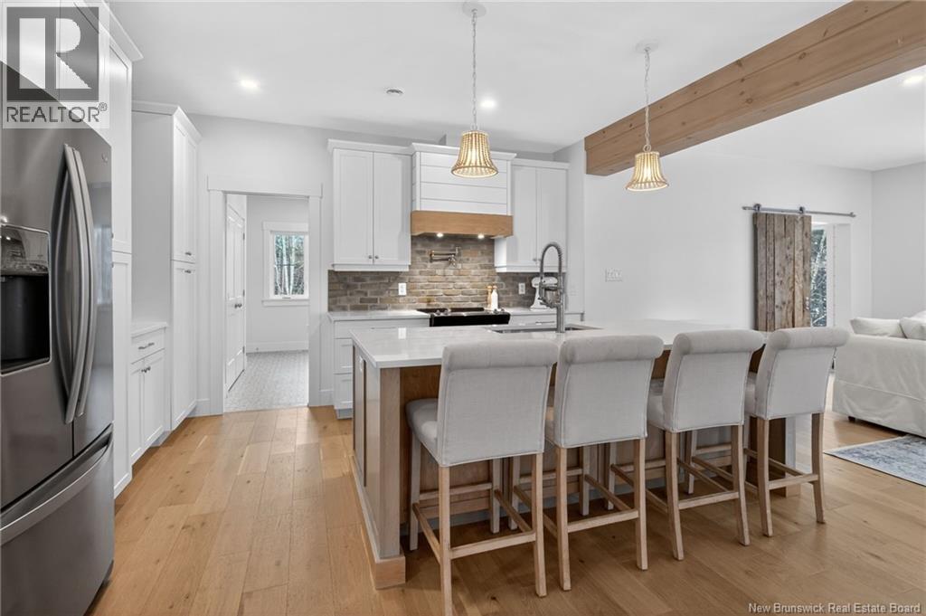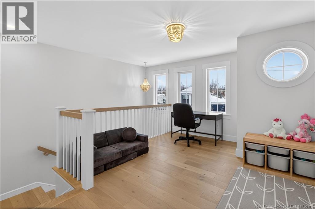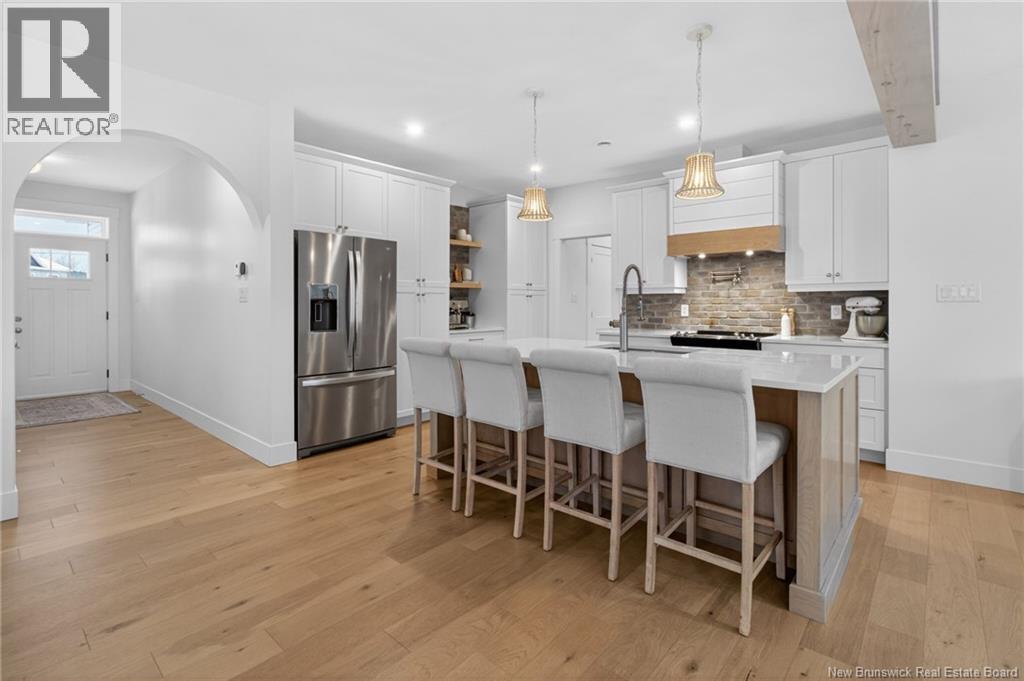 Welcome to 38 Heros Court, this custom home is located on a quiet cul-de-sac in Moncton. Thoughtfully designed with a modern farmhouse influence, the main level invites you in with an open layout centered around a bright, beautifully finished kitchen. Here youll find stainless steel appliances, incredible cabinet space, a large 7-foot island, custom backsplash and coffee bar. The dining area flows into a spacious living room complete with a propane fireplace and large windows that frame the natural landscape outside. A charming sunroom extends your living space and provides the ideal spot to relax with morning coffee. From here, you can step onto the side deck and enjoy peaceful views of the private, tree-lined backyard. A mudroom and a 2-piece powder room complete the main level. Upstairs, the primary bedroom is a private retreat, featuring a luxurious ensuite with double sinks, a soaker tub, and a generous walk-in closet. Two additional bedrooms are connected by a bathroom, while a second-floor laundry room and versatile loft area add both comfort and convenience. The walkout lower level expands the home even further, offering a fourth bedroom, a full bathroom, and a large family room with direct access to a covered concrete patio, reinforced and wired for a future hot tub and pool. The treed backyard provides a quiet, natural setting perfect for outdoor enjoyment. Come experience all that 38 Heros Court has to offer! (id:44840)