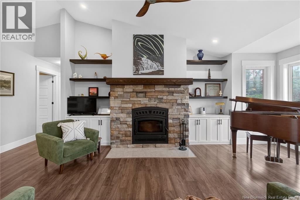 Welcome to this beautifully designed bungalow offering space, comfort, and versatility on a private 3.45-acre lot. The main floor features a large welcoming entrance leading into a bright living room with cathedral ceilings, a wood-burning fireplace with cultured stone, built-in shelves, and expansive windows overlooking the private backyard. The open-concept layout flows seamlessly into the dining area and kitchen, which includes a centre island, propane stove, and ample storage with pantry cabinetry. Just off the kitchen, a convenient mudroom connects to the garage, along with a separate laundry area. The main level offers 3 generous bedrooms, including a spacious primary suite with walk-in closet and ensuite featuring a soaker tub and stand-up shower. A full main bathroom completes this level. The walk-out basement adds excellent versatility with 2 large bedrooms, an oversized family room with kitchenette (sink and mini fridge) and patio doors to the backyardideal for rental potential or extended family. Youll also find a full bathroom and a large storage/utility room. Enjoy the private outdoor setting with a large deck and extension surrounding the 24 heated saltwater above-ground pool offering a peaceful country feel just minutes from the city. Additional features include dual-zone central air, central vacc, water softener, generator hookup, durable CanExel siding, a baby barn built in 2020 on post-techs and many more (id:44840)