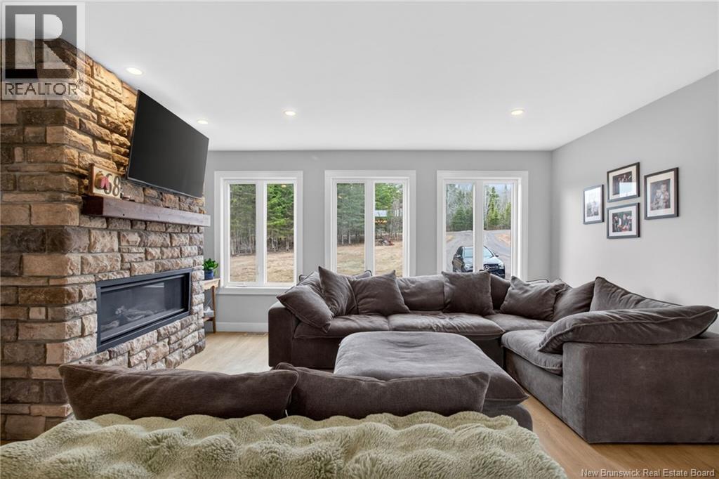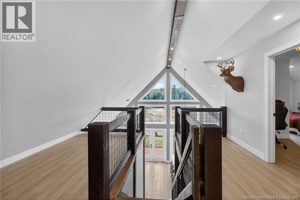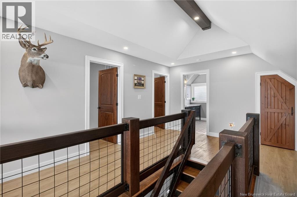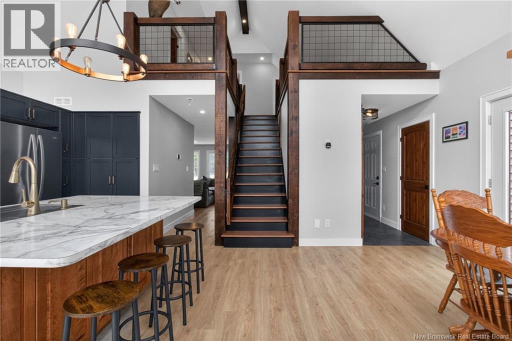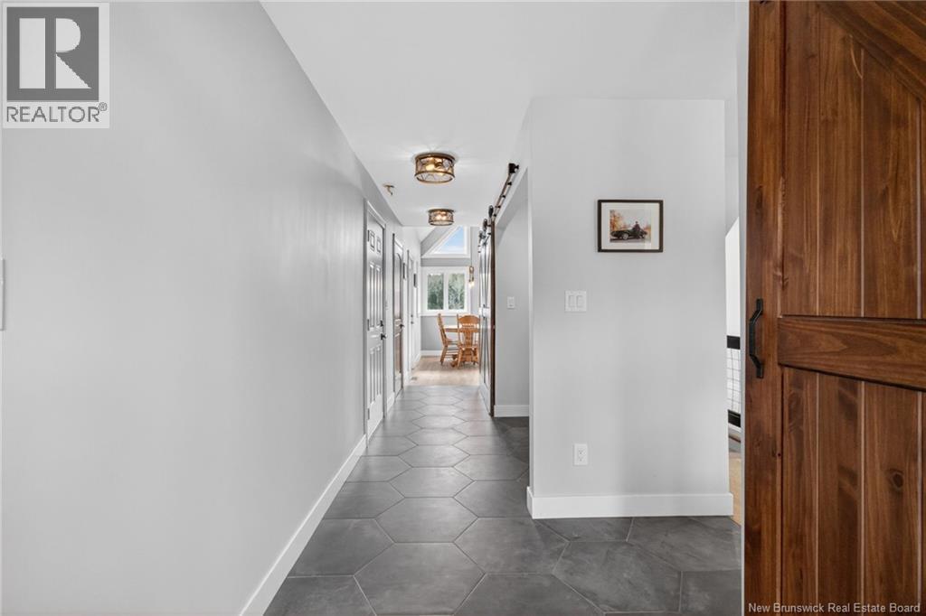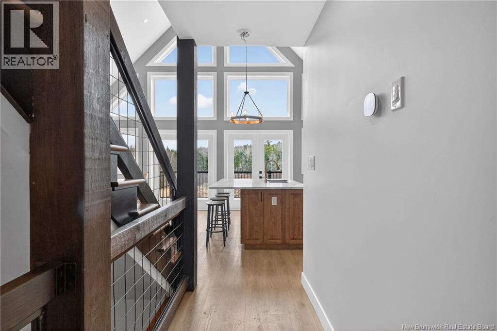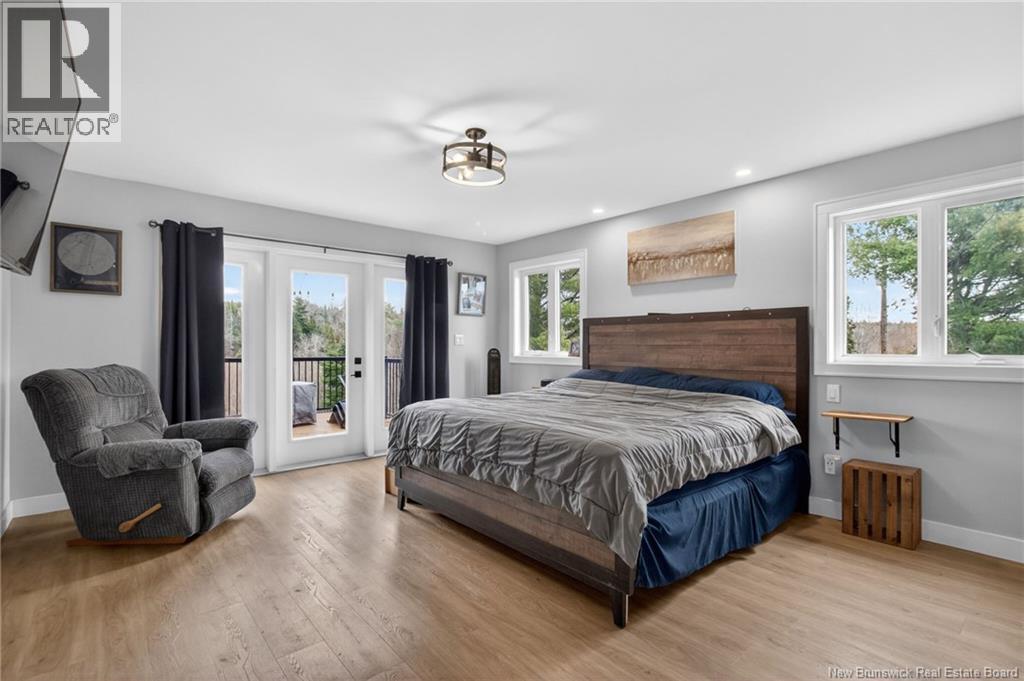 Set along the Pollett river, this exceptional home offers the kind of privacy and peaceful setting that is hard to find, yet you are just 10 minutes to the highway and Petitcodiac. Step inside to a bright, main level where the kitchen and dining area take center stage, featuring soaring cathedral ceilings and an impressive wall of windows that flood the space with natural light. The kitchen is both stylish and functional with a walk-in pantry, oversized island, and easy access to the expansive back deck that stretches the full length of the home - perfect for relaxing or entertaining. Convenience meets comfort with a half bath and laundry just off the garage. The main-level primary suite is a true retreat, complete with deck access, a walk-in closet, and a spa-inspired ensuite featuring a jetted tub and custom shower. Upstairs, you will find a thoughtfully designed layout overlooking the main living space, with two flexible areas ideal for a home office or cozy reading nook, along with two bedrooms and a full bath. The walk-out lower level adds even more living space with a family room, rec room (easily converted to an additional bedroom), and another full bath. A generous unfinished area provides plenty of storage. A rare blend of space, style, and serenity, this is rural riverfront living at its best. (id:44840)