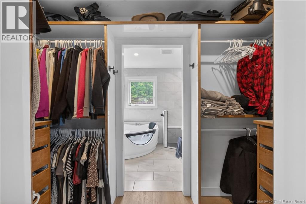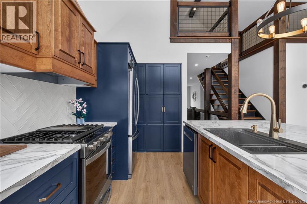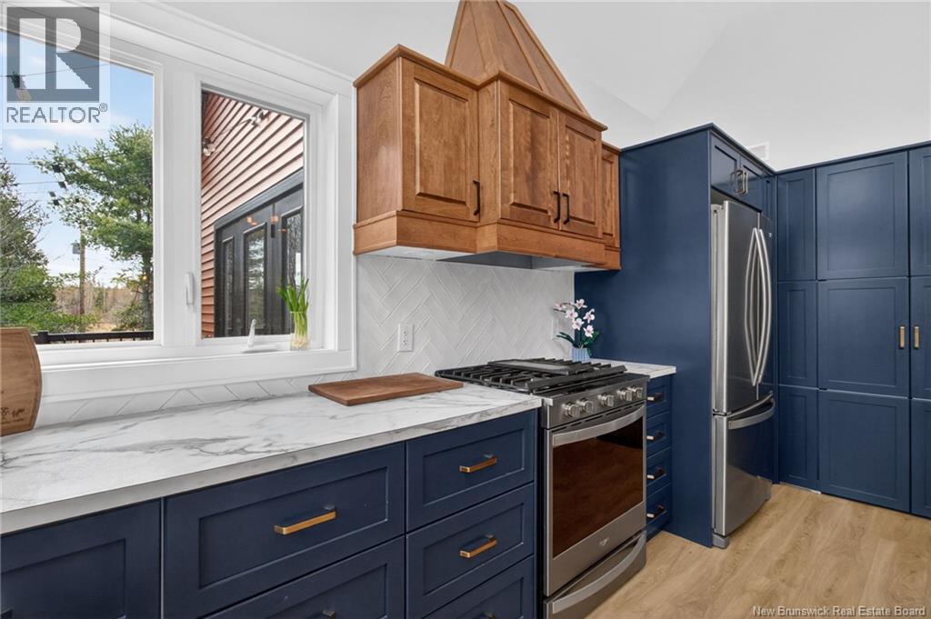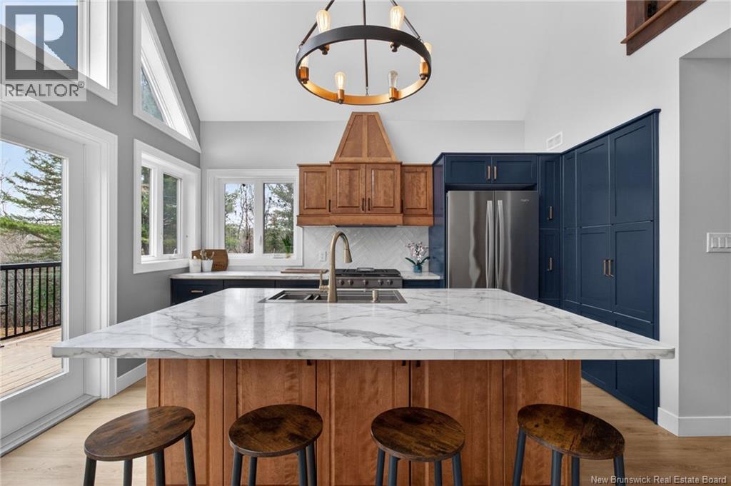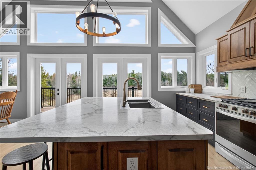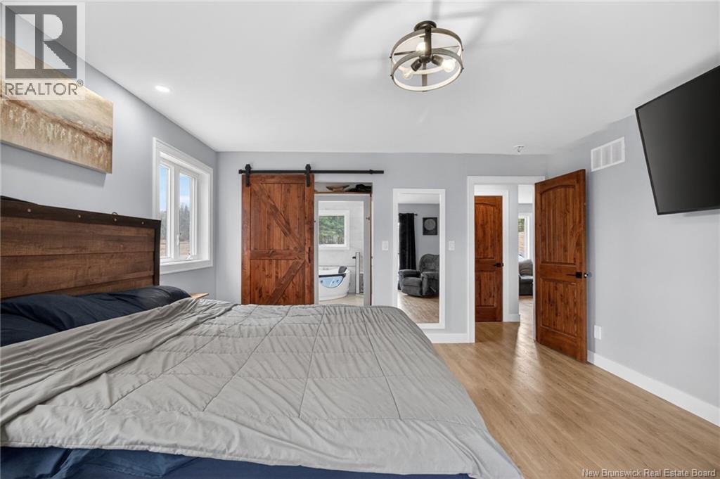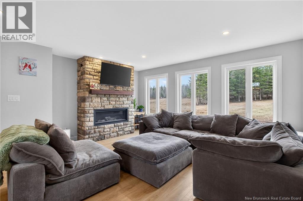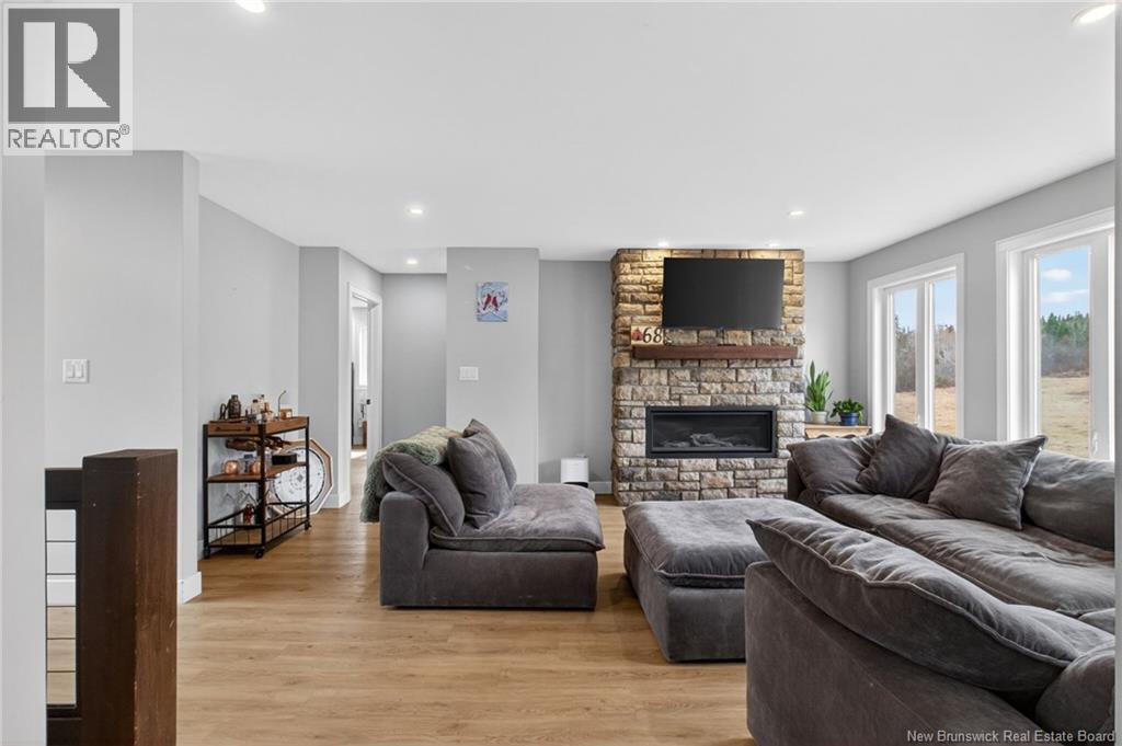 Set along the Pollett river, this exceptional home offers the kind of privacy and peaceful setting that is hard to find, yet you are just 10 minutes to the highway and Petitcodiac. Step inside to a bright, main level where the kitchen and dining area take center stage, featuring soaring cathedral ceilings and an impressive wall of windows that flood the space with natural light. The kitchen is both stylish and functional with a walk-in pantry, oversized island, and easy access to the expansive back deck that stretches the full length of the home - perfect for relaxing or entertaining. Convenience meets comfort with a half bath and laundry just off the garage. The main-level primary suite is a true retreat, complete with deck access, a walk-in closet, and a spa-inspired ensuite featuring a jetted tub and custom shower. Upstairs, you will find a thoughtfully designed layout overlooking the main living space, with two flexible areas ideal for a home office or cozy reading nook, along with two bedrooms and a full bath. The walk-out lower level adds even more living space with a family room, rec room (easily converted to an additional bedroom), and another full bath. A generous unfinished area provides plenty of storage. A rare blend of space, style, and serenity, this is rural riverfront living at its best. (id:44840)